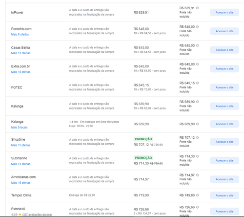 Menor preço segundo o Google Shopping