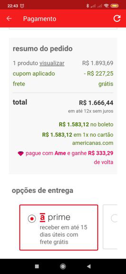 Na parte de pagamento. No app