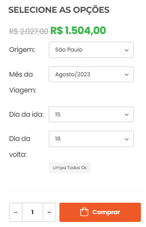 Você escolhe o mês e o dia da sua ida e volta, tendo uma flexibilidade de 24h para antes ou depois das datas selecionadas;