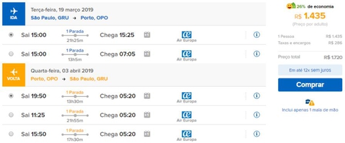 Voos para o Porto, saindo de São Paulo. Ida e volta, com taxas incluídas, a partir de R$1.720