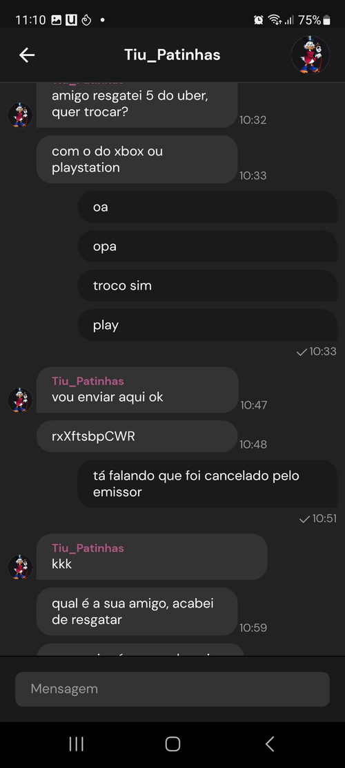 Alguém troca por ifood ou PIX? Tenho dois códigos de 10