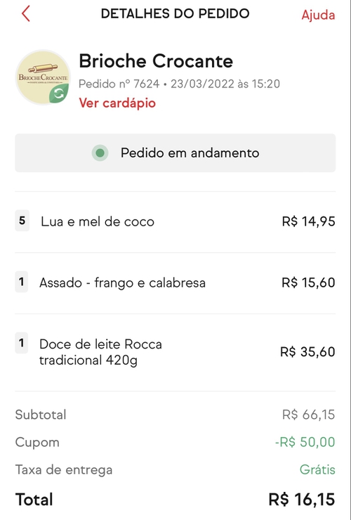 Pedi na primeira que apareceu kkk tem que ser rápido se não perde