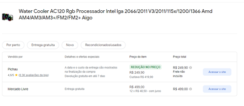Menor preço segundo o Google Shopping