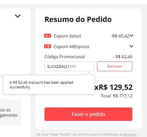 Conjunto de cupons para alcançar o valor total: