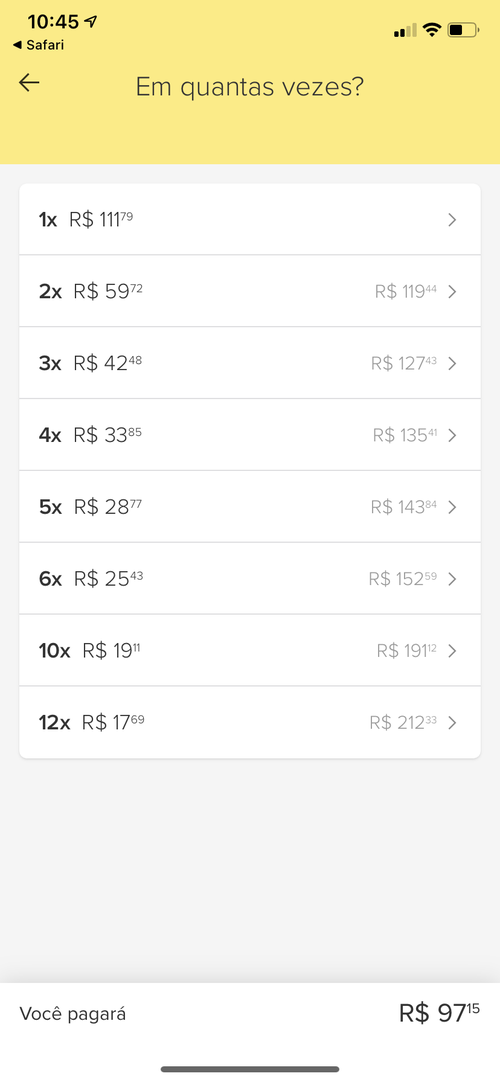 Aparece o valor aqui descrito, mas depois de realizada a compra o valor cobrado é de R$129