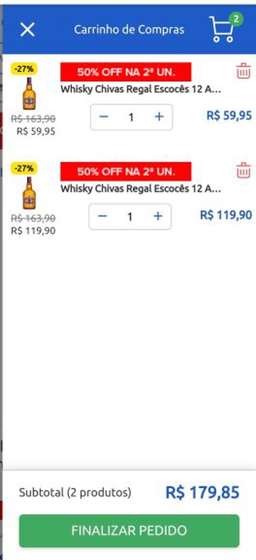 Whisky Chivas Regal Escocês 12 Anos 1 L | 2 unidades | R$89 cada