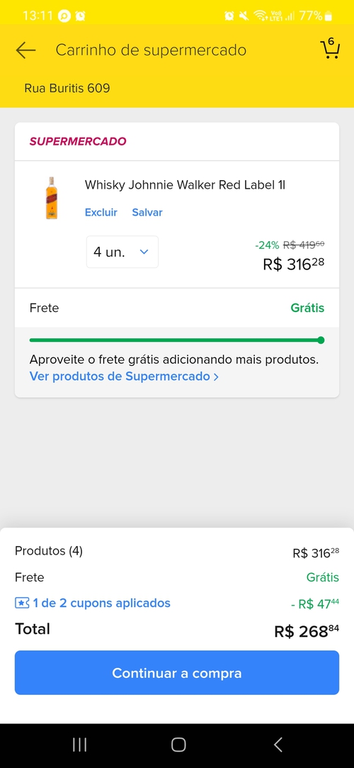 valendo mais a pena agora pegar o 750ml por 61,12 - 15%