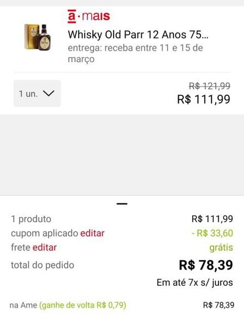Whisky Old Parr 12 anos 750ml | R$78