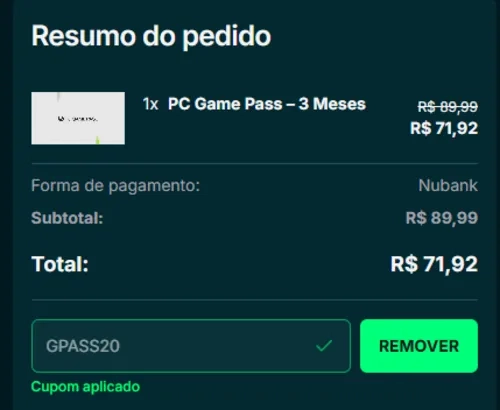 funcionou nesse exato momento o cupom, ele pega em todas assinaturas no site de PC, Ultime etc, assinei 3 meses de game pass pra PC