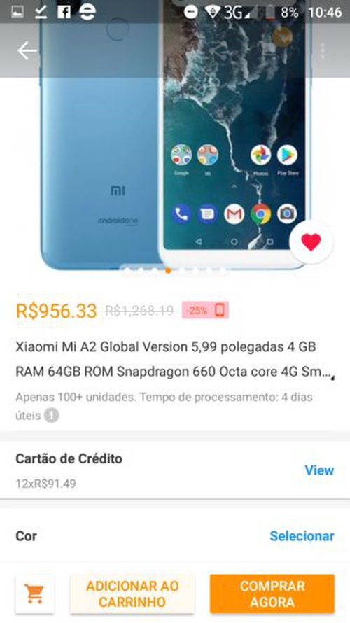 Xiaomi Mi A2 Global Version 5.99 inch 4GB RAM 64GB ROM por R$ 890