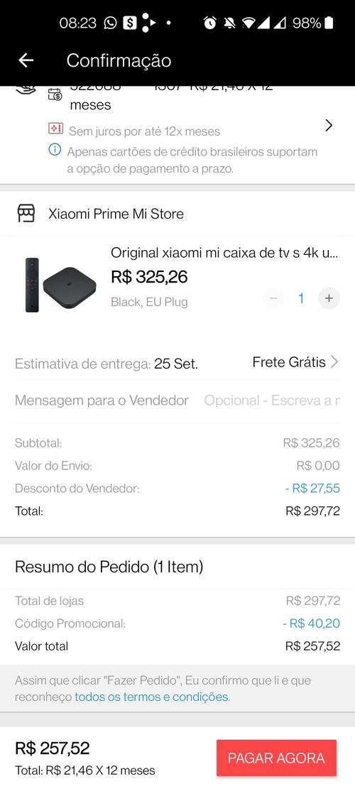 Aqui deu certo o valor. Pelo app. E em 12x sem juros ainda kkkk. Realmente muito em conta.