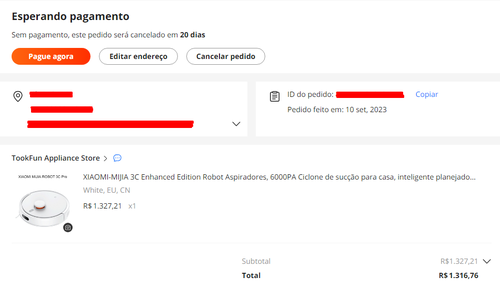 Cancelei aqui, infelizmente não foi hj que comprei meu robozinho