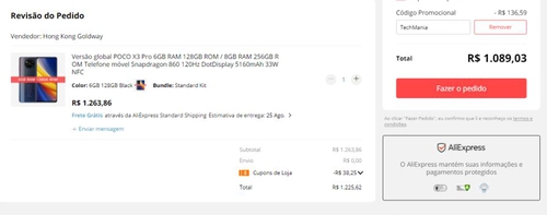Xiaomi POCO X3 PRO 6GB+128GB | R$ 1089