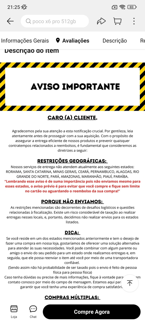Se atentem a descrição desses vendedores com produto local. Sou de Alagoas e tive o pedido cancelado por não enviar para alguns estados