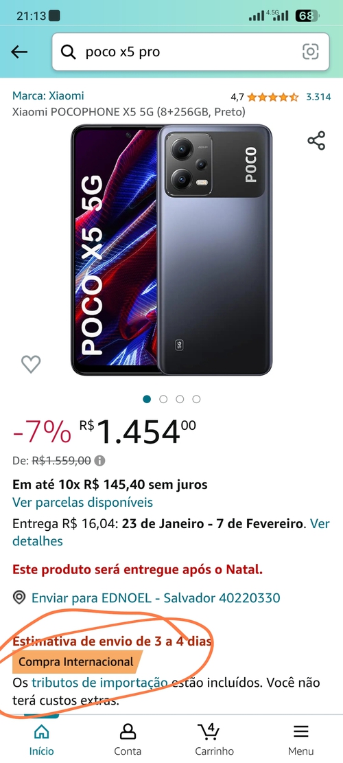 Galera eu não arrisco mais compra internacional não, mesmo o site da Amazon dizendo que não terá mais custo extras nessa compra. Fui taxado no fone de ouvido que comprei. Os correios estão taxando tudo mesmo vc alegando que as taxas foram pagas. Tive que pagar quase o mesmo valor do fone em taxas dos correios. Então, eu não arrisco mais comprar produtos na Amazon que não estejam no Brasil.