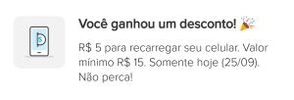 (Usuários selecionados) Desconto de R$5 para recar...