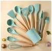 [12 PÇS] Conj. de Utensílios de Cozinha, Madeira/Silicone Resistente a Alta Temperatura/Antiaderente