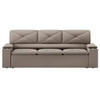 Sofá 3 lugares DDS Next Pop com Assento Retrátil e Encosto Reclinável em Velosuede com porta-copos - 205cm de Largura - Capuccino