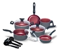Jogo de panelas com 9 teflon Frigideira cor Preto com vinho