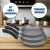 Kit 3 Frigideiras Antiaderentes 16/18/20 Cinza/Vermelho