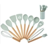 Kit 12 Utensílios De Cozinha Em Silicone E Cabo De Madeira Jogo De Utensílios Resistente ao Calor