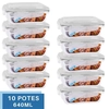 Conjunto 10 Potes 640ml Vidro Hermético 4 Travas Marmita