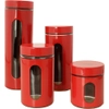 [R$10,79 AME SC] Porta Mantimentos em Aço Inox e vidro 4 Peças Vermelho - Basic+
