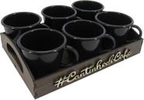 Kit 6 Xícaras Acrílica Preta Com Bandeja Cantinho do Café