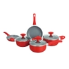 Jogo de Panelas Cerâmica 5 Peças Casa do Chef Predileta com Tampa de Vidro Vermelho