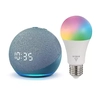 [Prime] Amazon Echo Dot (4ª geração) com Relógio e Alexa + Lâmpada RGB Smarteck 12W