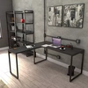 Mesa de Escritório em L Estilo Industrial 1,50mX1,50m Kuadra, Trevalla, Preto Ônix/Est.Preta