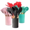 Kit 12 Utensílios De Cozinha Em Silicone E Cabo De Madeira