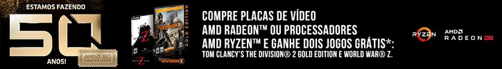 Compre Placas De Vídeo ou Processadores AMD e ganhe 2 games (The Division 2 e World War Z)