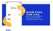 Ganhe R$ 20 de Cashback ao Usar seu Cartão Visa no Google Pay