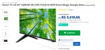Smart TV LG 65" UQ8050 4K UHD ThinQ AI HDR Smart Magic Google Alexa