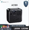 Estação de Energia BLUETTI AC180 com Capacidade de 1800W, 1052Wh, 9 Saídas e 3500 Ciclos de Vida Útil