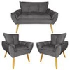 | Vendido por MagaluR$59,84| Vendido por MagaluKit Namoradeira 2 Lugares + 2 Poltronas Opala para Sala Pés Madeira Sued Cinza Grafite - Borsuk