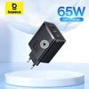 Carregador BASEUS Super Rápido 65W GaN com Três Saídas, USB A e USB C, Suporte a QC