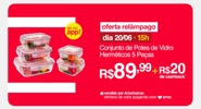 (APP - AME R$69,99)Conjunto de Potes de Vidro 5 Peças 370ml/520ml/640ml/800ml/1040ml - Casual Home