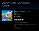 | Vendido por AmazonR$749| Vendido por AmazonCrash™ Team Racing Nitro-Fueled PS4