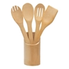 Kit De Utensílios 5 Peças Em Bambu Com Suporte