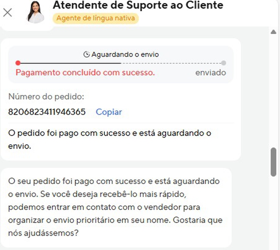Recebi essa mensagem do aliexpress